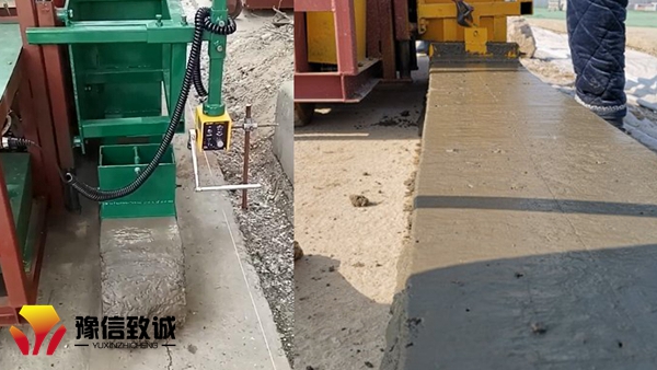 3.處理接縫時,先用噴燈將模板與攪籠預熱,然后將模板套入此前施工的冷茬處,使模板穩(wěn)扣原茬,擺正機器,調(diào)好指針一,然后正常操作。